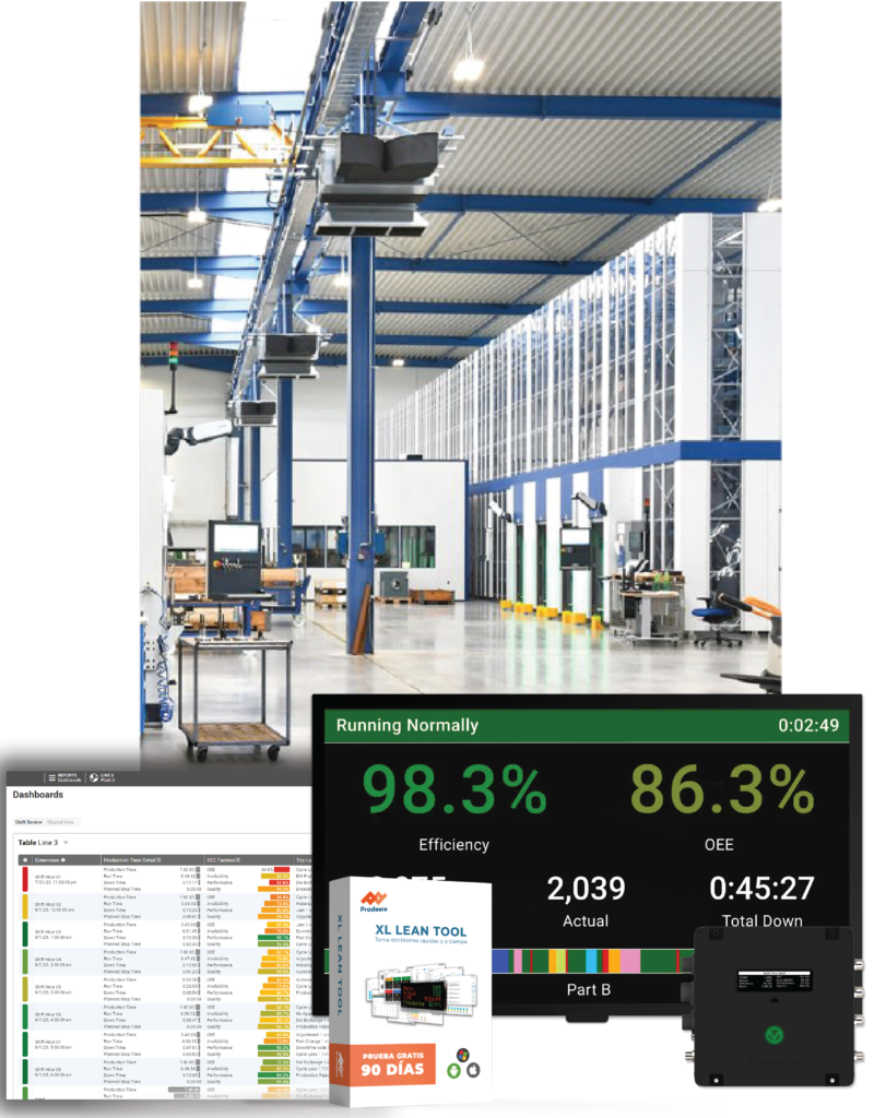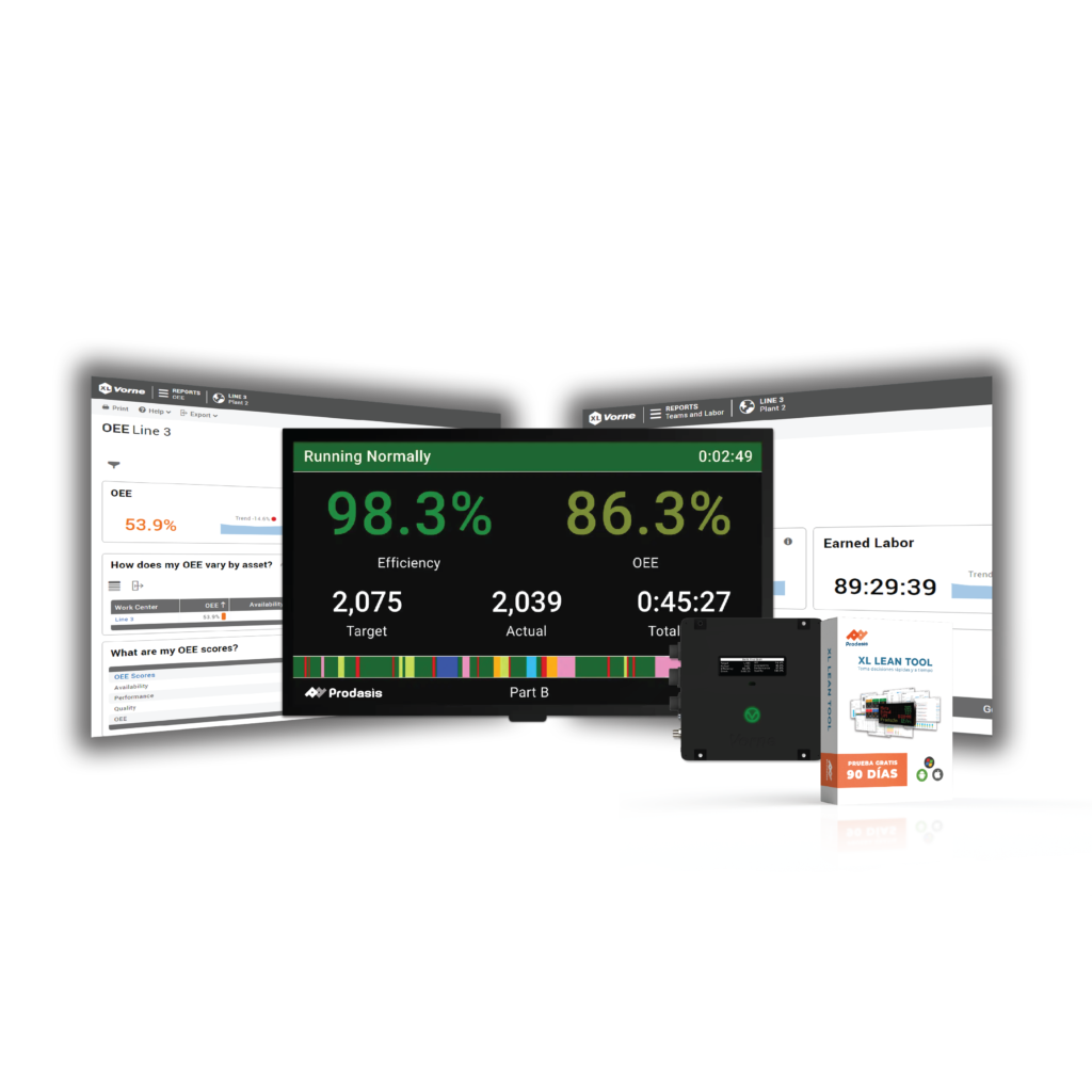 Nunca había sido tan fácil incrementar la eficacia de manufactura. En un solo producto encontrarás fábrica visual, andon, conectividad a la máquina, y reportes históricos. Sin software, ni servidores que mantener. Se conecta a las máquinas en minutos. Así de fácil.